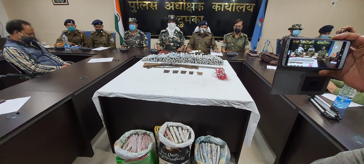 भारी मात्रा में विस्फोटक,गोला बारूद एवं हथियार बरामद दुमका:एसपी अम्बर लकड़ा ने बुधवार को पत्रकारों को संबोधित करते हुए बताया कि लगातार ऐसी खबर मिल रही थी कि मसलिया थाना क्षेत्र में नक्सली किसी बड़ी वा...