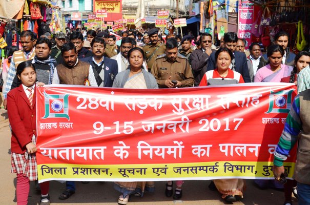 दुमका। यातायात नियमों का पालन कर न सिर्फ हम स्वयं को बल्कि अपने परिवार को भी सुरक्षित रख सकते हैं। यातायात संबंधी छोटी छोटी बातों को ध्यान में न रखने के कारण से ही प्रत्येक वर्ष हजारों कीमती मानव संसा...