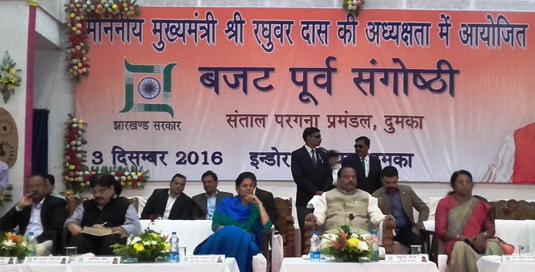 उपराजधानी के इंडोर स्टेडियम दुमका में प्रमंडलस्तरीय बजट पूर्व संगोष्ठी 2017 -18 को संबोधित करते हुए मुख्यमंत्री रघुवर दास कहा की झारखण्ड का हर व्यक्ति विकास चाहता है , शांति चाहता है ,हर व्यक्ति को उस...
