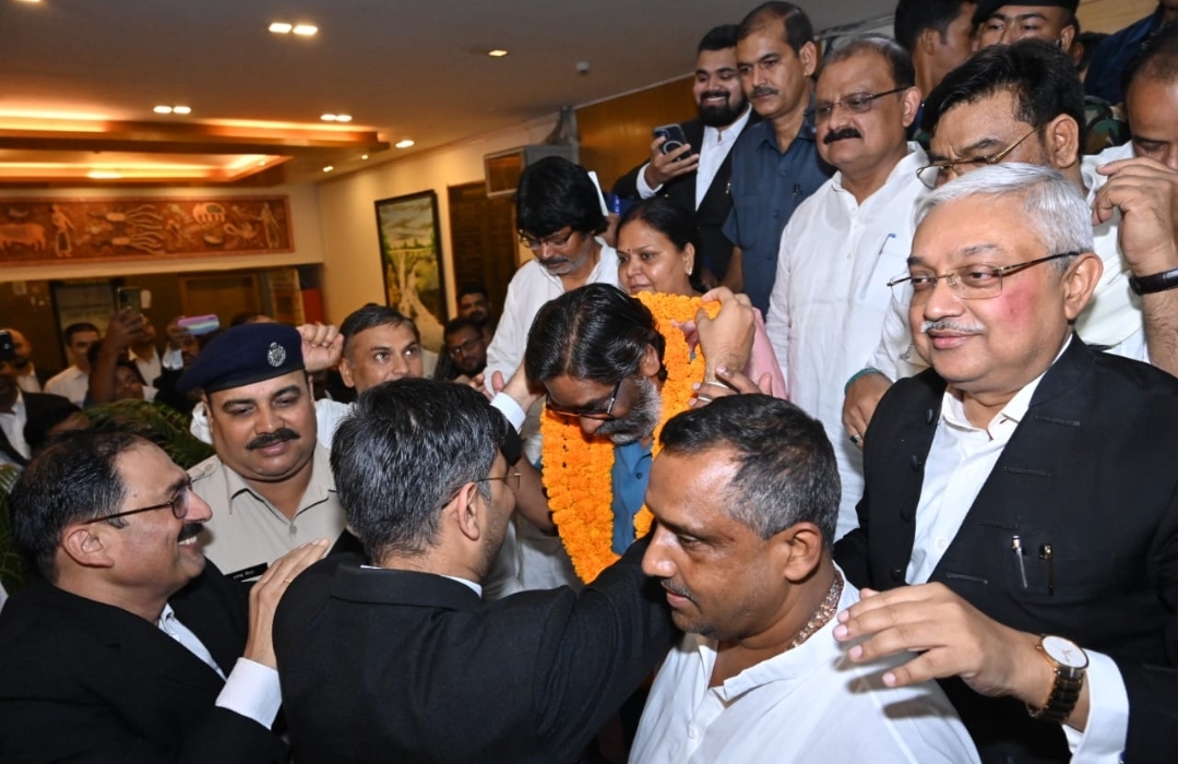 जेएसएलपीएस के कंप्यूटर ऑपरेटर्स और परियोजना कर्मियों ने मानदेय में वृद्धि एवं समायोजन को लेकर राज्य सरकार द्वारा लिए गए निर्णय पर ढोल -नगाड़े के साथ मुख्यमंत्री का किया स्वागत, दी बधाई रांची:जश्न, उमं...