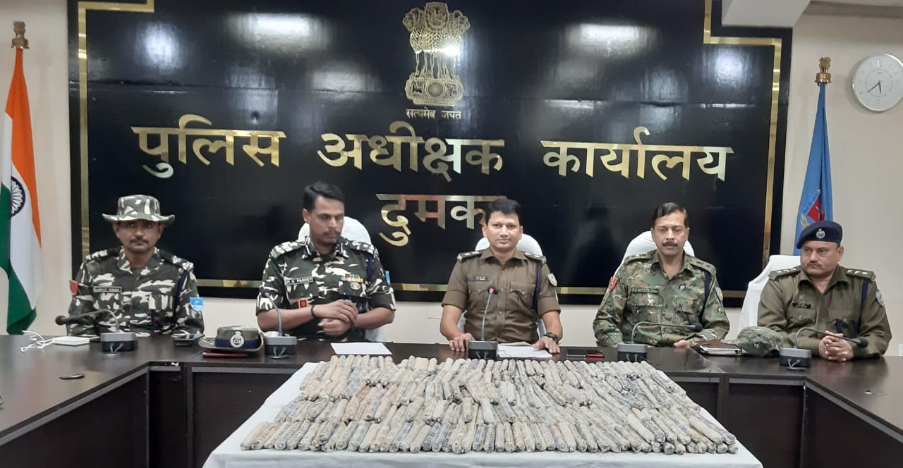 उपराजधानी के दुमका पुलिस ने भारी मात्रा में विस्फोटक सामग्री बरामद किया है. घटना गोपीकांदर थाना क्षेत्र की है.इस संबंध में बुधवार की शाम पुलिस अधीक्षक वाई एस रमेश ने प्रेसवार्ता कर बताया कि एसएसबी एवं पुलिस जवानों के संयुक्त टीम ने थाना क्षेत्र के लखीबाद के मंटु मंडल एवं सुनील कुमार मंडल के पत्थर खादान में अवैध रूप से छुपाकर 320 पीस जलैटीन एवं 200 पीस डेटोनेटर बरामद पुलिस की है। गोपीकांदर पुलिस कांड संख्या 34/19 के तहत भादवी की धारा 4/5 विस्फोटक पदार्थ अधिनियम के तहत मामला दर्ज खादान मालिकों से पूछताछ कर रही है। अभियान में एएसपी अभियान मानवेल बास्की, गोपीकांदर थाना प्रभारी फागु होरो आदि शामिल थे।