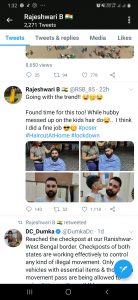 दुमका: उपायुक्त राजेश्वरी बी की एक तस्वीर सोशल मीडिया पर काफी छाया हुआ है . इस तस्वीर में वह अपने पति के बाल काटते हुए नजर आ रही है जो लोगों ने खूब पसंद किया है .यहां बता दें कि यह तस्वीर दुमका उपायुक्त ने अपने पति के बाल काटते हुए निजी ट्विटर अकाउंट पर शेयर किया है.और शेयर करते हुए उन्होंने लिखा है कि ” चलन के साथ चल रही हूं” . जब पति बच्चों के साथ खेल रहे थे तब मैं यह काम कर रही थी .शायद यह काम भी मैंने अच्छा किया है.