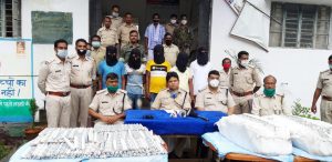 दुमका: जामा पुलिस ने गुप्त सूचना के आधार पर भारी मात्रा में एक हाइवा में बिस्फोटक बरामद करने में सफल रही। विस्फोटक के रूप में अमोनियम नाइट्राइड और जिलेटिन बरामद हुई है। पुलिस ने यह कार्रवाई जामा थाना क्षेत्र में की है। इसकी जानकारी प्रेसवार्ता कर एसपी अंबर लकड़ा ने दी। उन्होंने बताया कि पुलिस को सूचना मिली कि एक हाइवा में बिस्फोटक ले जाया जा रहा है। जो शिकारीपाड़ा पत्थर औद्योगिक क्षेत्र जायेगा। पुलिस ने जांच के क्रम में एक हाइवा से बिस्फोटक बरामद किया। साथ ही अवैध तस्करी कर रहे पांच लोगो को भी विस्फोटक के साथ गिरफ्तार किया है। पुलिस के समक्ष सभी पांचों लोगो ने पूछताछ के दौरान अपनी संलिप्तता स्वीकार किया है। लॉक डाउन खत्म होते ही अवैध रूप से बिस्फोटक का धंधा करने वाले सक्रिय हो चुका है। चुंकि दुमका के कई थाना नक्सल प्रभावित भी है। दुमका के शिकारीपाड़ा थाना क्षेत्र में माइनिंग का भी कारोबार होता है, तो ऐसे में भारी मात्रा में बिस्फोटक का पकड़ाना पुलिस के लिए जांच का विषय है। पुलिस दोनों बिंदुओं पर जांच कर रही है। पुलिस ने लगभग 4 हजार पीस जिलेटिन और 4000 किलो ग्राम अमोनियम नाइट्रेट 80 बोरा के साथ हीं एक हाइवा व एक ऑल्टो कार जप्त किया है।