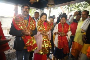 रांची :मुख्यमंत्री हेमंत सोरेन सपरिवार शक्तिपीठ रजरप्पा स्थित मां छिन्नमस्तिका मन्दिर पहुंचे। मुख्यमंत्री ने अपने परिजनों के साथ मां छिन्नमस्तिका की विधिवत पूजा अर्चना की। पूजा अर्चना के बाद मुख्यमंत्री ने कहा कि राज्यवासियों के जीवन में सुख, शांति, अमन-चैन, समृद्धि और खुशहाली आए इसकी कामना माता रानी से की है। उन्होंने कहा कि विकास की राह पर खड़े अंतिम व्यक्ति को खुशहाल बनाना हमारी सरकार का ध्येय है.