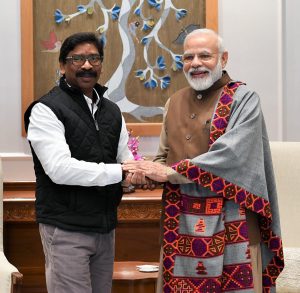 नई दिल्ली : झारखंड के मुख्यमंत्री व झामुमो के कार्यकारी अध्यक्ष हेमंत सोरेन ने शनिवार को राजधानी नई दिल्ली में प्रधानमंत्री नरेंद्र मोदी से मुलाकात किया . मुख्यमंत्री और प्रधानमंत्री के बीच झारखंड में ट्राइबल यूनिवर्सिटी खोलने एवं झारखंड को स्पेशल पैकेज के मुद्दे पर बातचीत हुई. हालांकि, कहा गया है कि हेमंत सोरेन की प्रधानमंत्री के साथ यह शिष्टाचार भेंट थी.