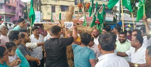 झारखण्ड मुक्ति मोर्चा ने भाजपा का पुतला जलाया