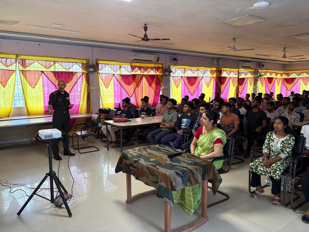 उन्होंने विशेष रूप से अग्निवीर योजना के बारे में जानकारी देते हुए बालक एवं बालिकाओं दोनों के लिए उपलब्ध अवसरों को स्पष्ट किया। साथ ही उन्होंने युवाओं को शैक्षणिक उत्कृष्टता, शारीरिक फिटनेस और व्यक्तित्व विकास पर ध्यान देने के लिए प्रेरित किया।
