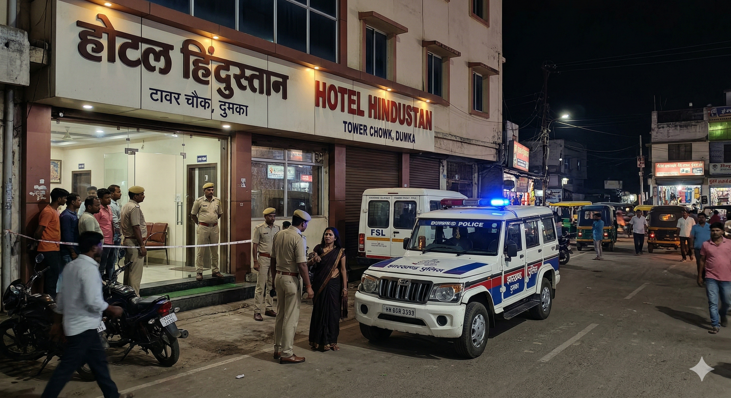 दुमका: शहर के दुधानी टावर चौक स्थित ‘होटल हिंदुस्तान’ में एक युवक का संदिग्ध अवस्था में शव मिलने से इलाके में सनसनी फैल गई है। मृतक की पहचान गोड्डा निवासी सादिक हुसैन अंसारी के रूप में हुई है। पुलिस ने मौके पर मौजूद उसकी महिला मित्र को हिरासत में ले लिया है और मामले की गहन जांच कर रही है।